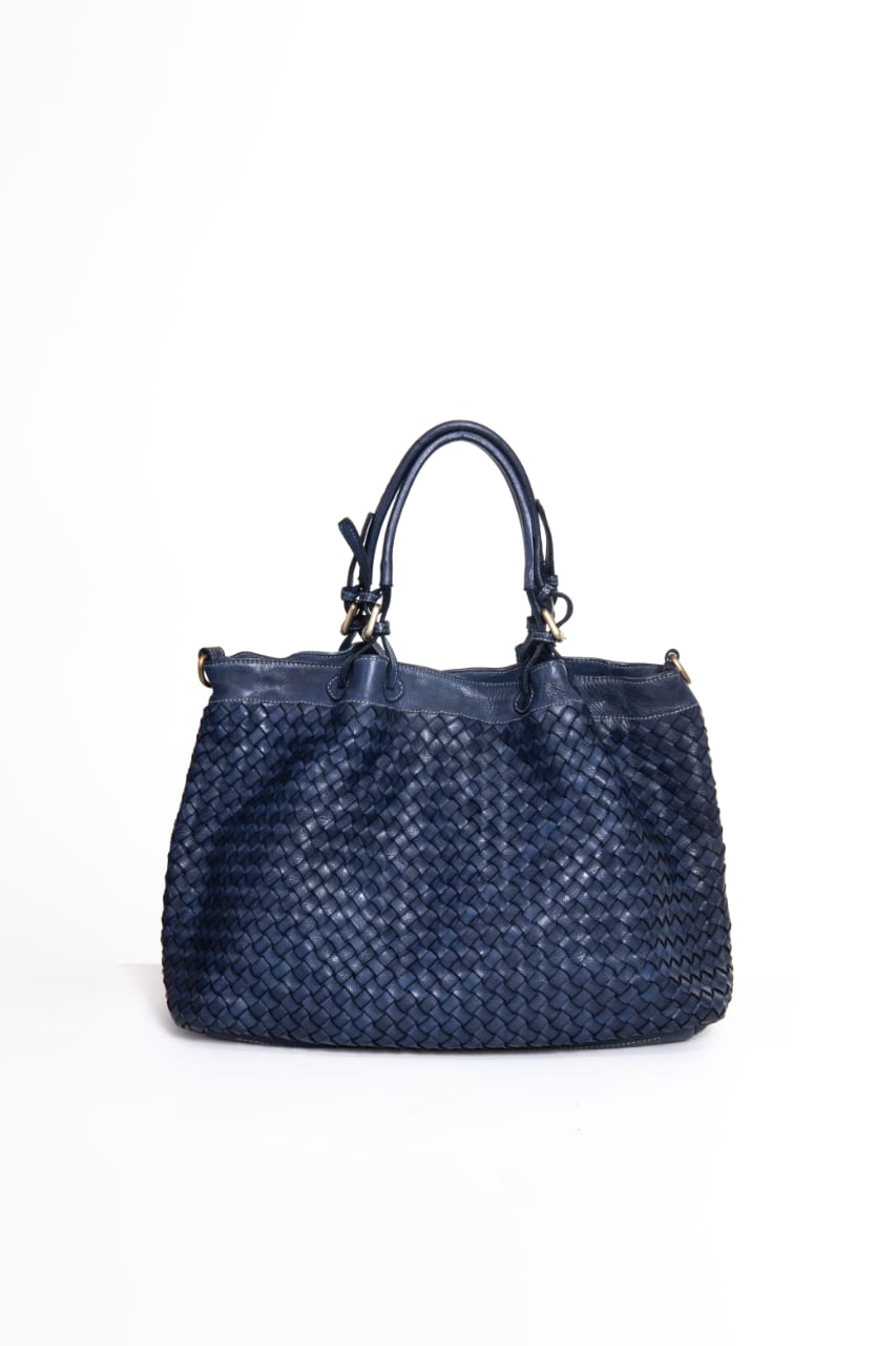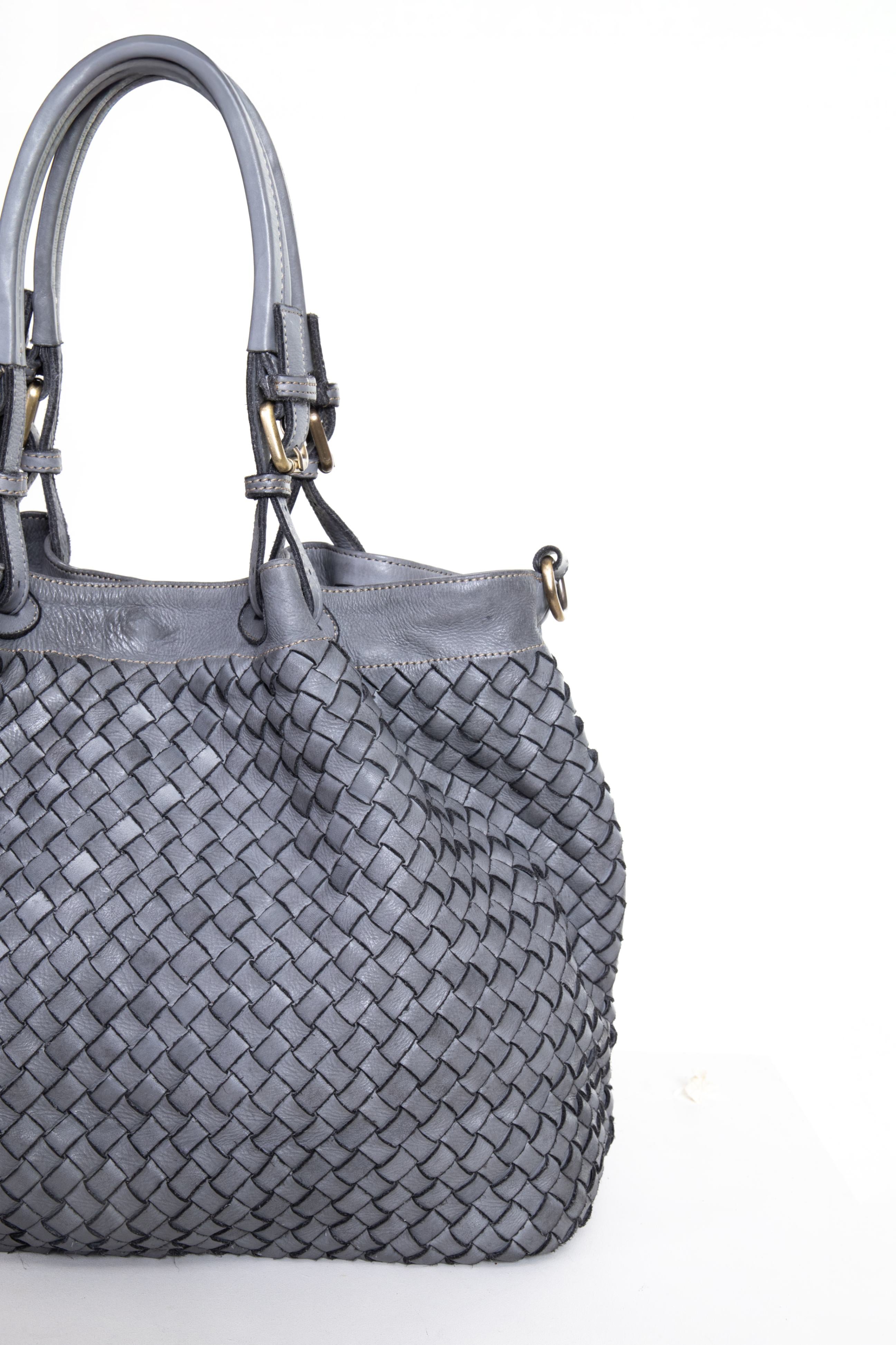 Soft handbag, older sister of the The Intrecciato Satchel model, produced in washed calfskin and dyed in the head, in classic style and entirely woven, a feature that gives elegance and resistance recalling the style of the Florentine Renaissance. It contains a Florentine Historical Craftsmanship certification letter.